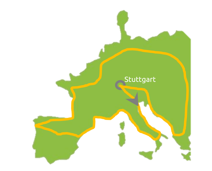 Since April 30th, Jürgen has been crossing the Alps in snow, circled all of Italy, passed places like Monaco, Barcelona and Amsterdam. After his first 4 weeks he reached Hamburg!